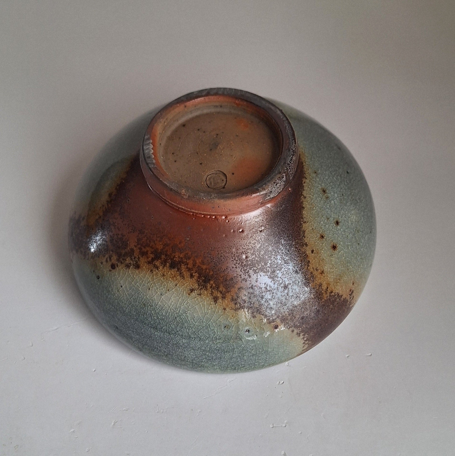 Small stoneware bowl. Wood fired with shino and natural ash glazes.