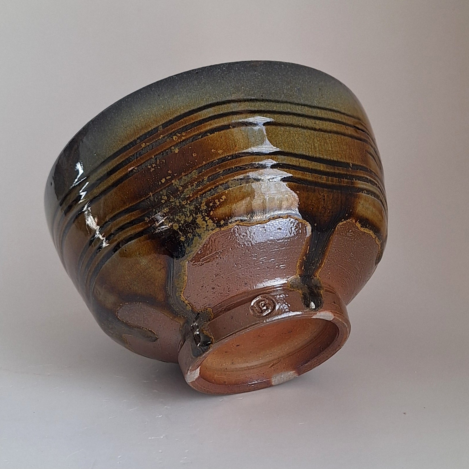 Soda fired with a high iron clay+ash glaze. Dimensions: 4"× 6"
