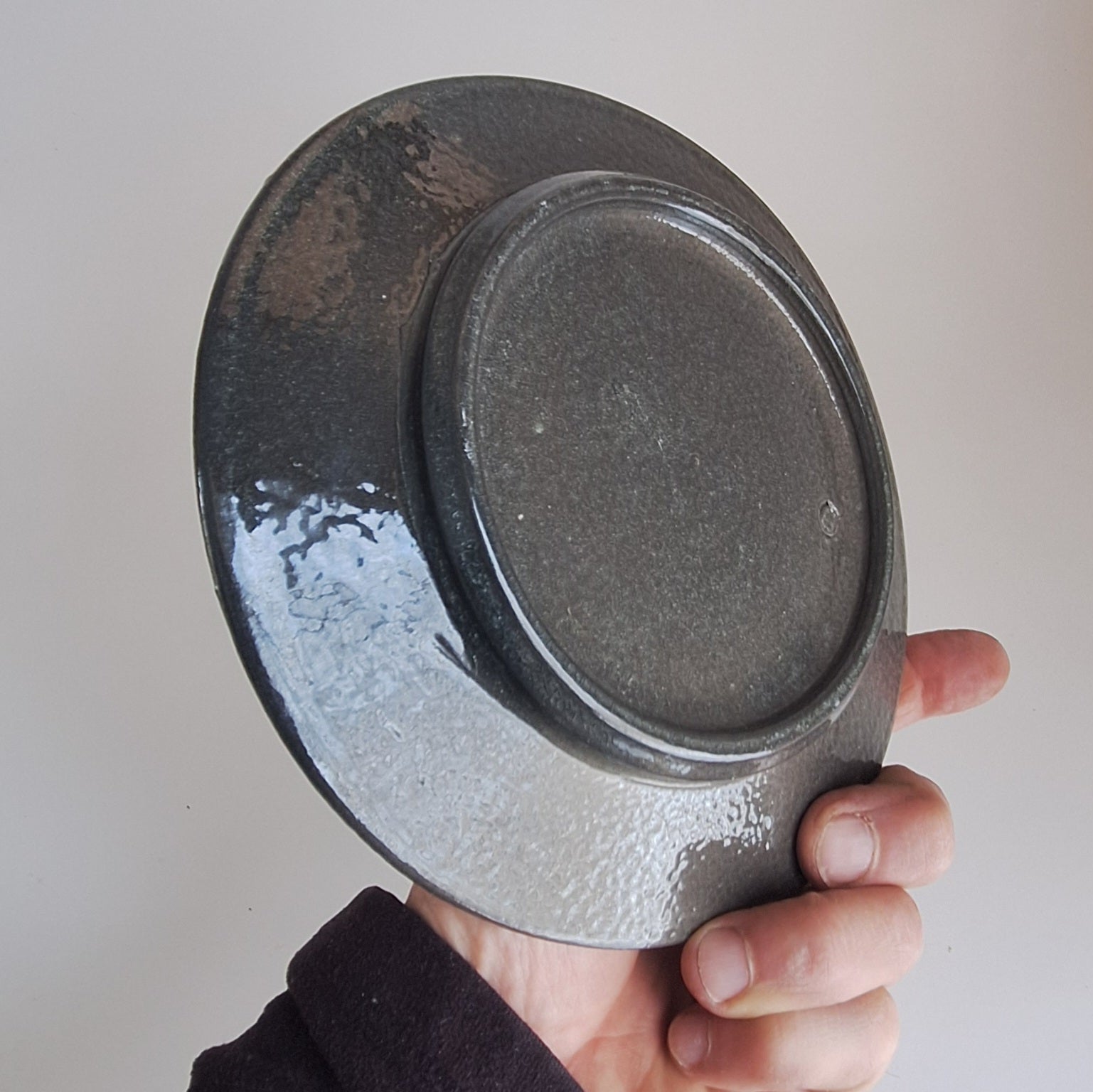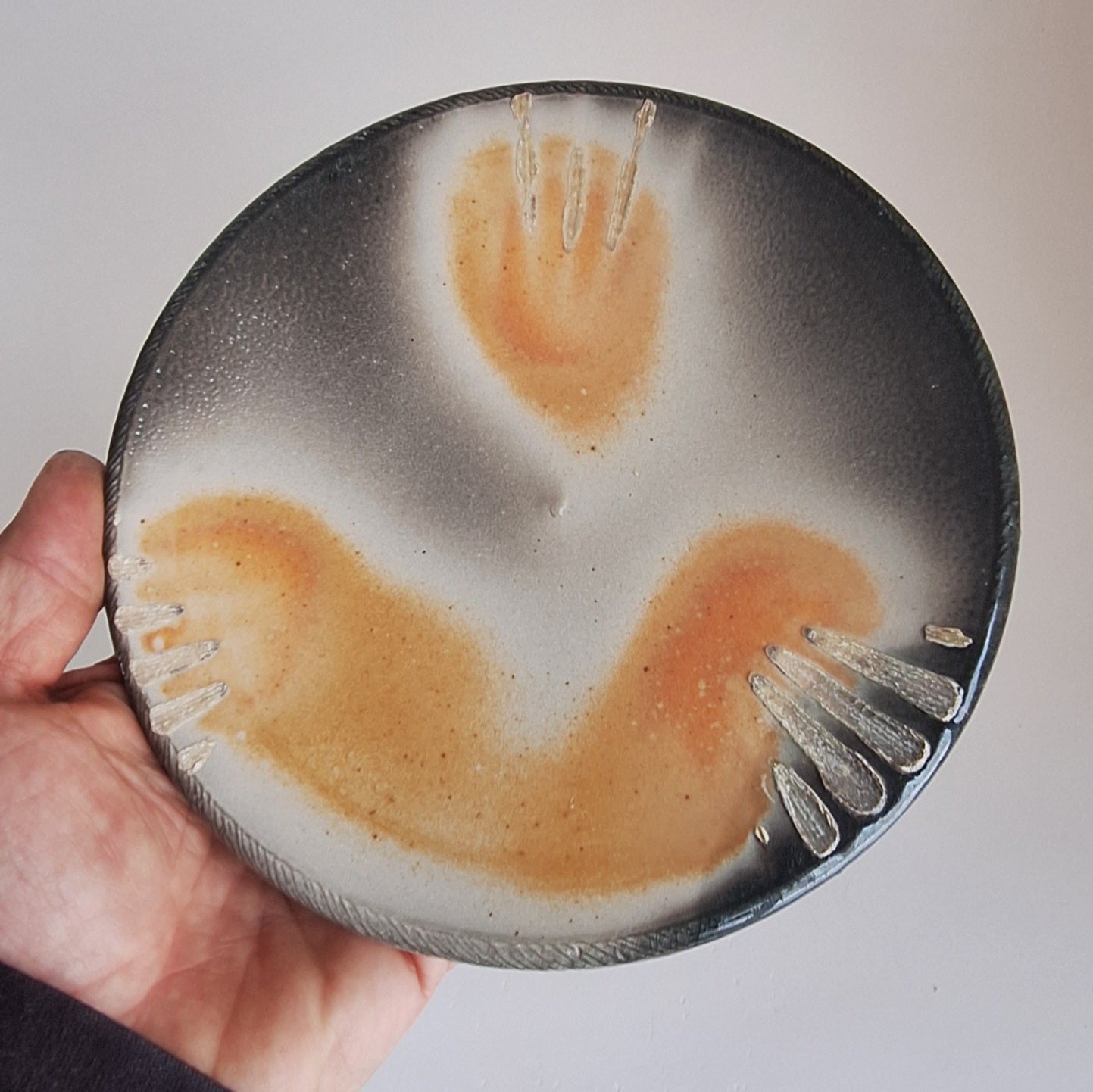 Small serving plate. Fired on seashells in the soda kiln.